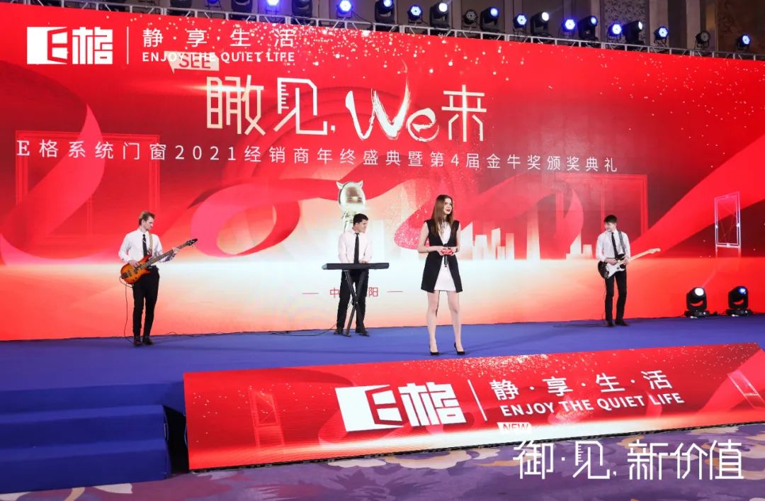 2022年2月25日下午,精彩繼續(xù)。瞰見,we來 E格靜音系統(tǒng)門窗2021經(jīng)銷商年終盛典暨第4屆金牛獎(jiǎng)?lì)C獎(jiǎng)典禮拉開帷幕。